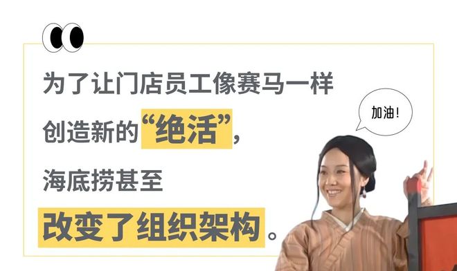 为了让门店员工像赛马一样创造新的“绝活”,海底捞甚至改变了组织架构。