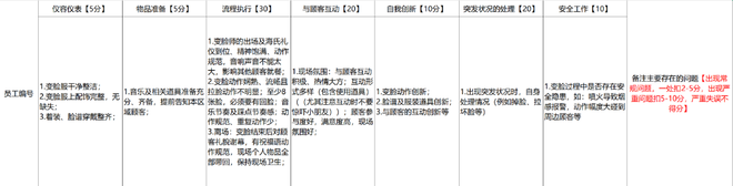 不过在外面摆摊卖艺能赚吆喝和打赏,在海底捞表演才艺是“KPI”,必须符合一套清晰的操作流程与考核体系,涉及表演流程、语言节奏、配乐匹配,甚至客户反应,几乎每一个动作、每一句话,都被标准化进了绩效指标中。