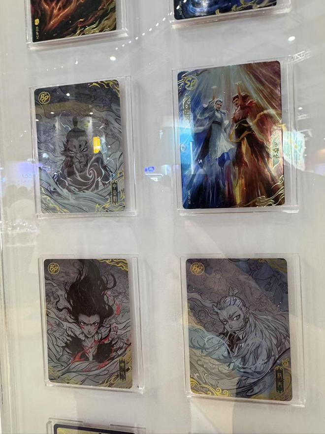 收藏区中,ONE PAPER COLLECTION(国内知名评级代理商研纸文化)展台展出了众多天价稀有卡牌。记者从现场了解到,一张PSA评级(国际知名的第三方收藏品评级机构)的《胜利女神》IP限量卡牌市场价高达5万元,另一张《OVERLORD》IP的限量卡牌市场价高达12万元。
