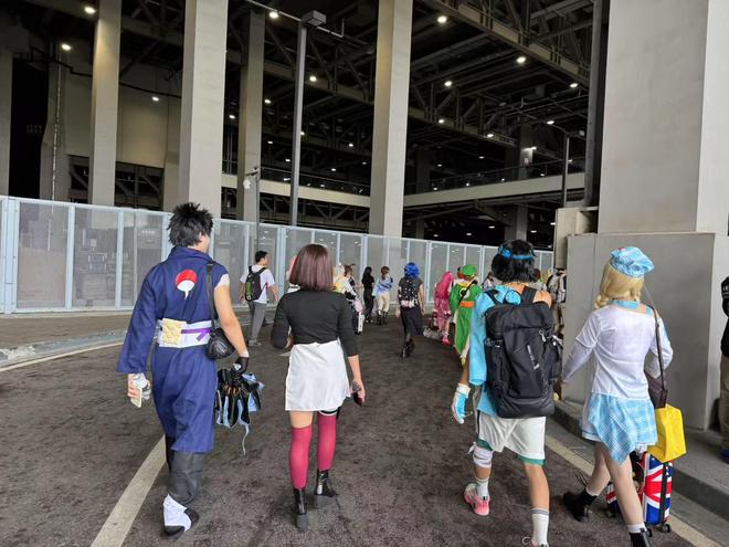 上午9时许,国家会展中心周边已人头攒动。麻辣记者在现场看到,精心装扮的coser们拖着沉重的行李箱在雨中穿梭;手持限定周边的粉丝们撑着雨伞,在展馆入口处排起蜿蜒长龙;背着各式痛包的观众络绎不绝地涌入会场。雨水打湿了衣衫,却掩盖不住每个人脸上兴奋期待的神情。