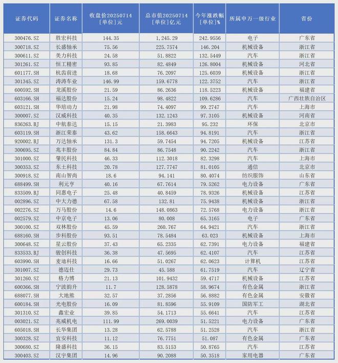 从二级市场表现看,截至7月14日收盘,今年以来共有38家上市公司股价涨幅超过50%,其中,胜宏科技(300476.SZ)等8家上市公司成功实现翻倍。