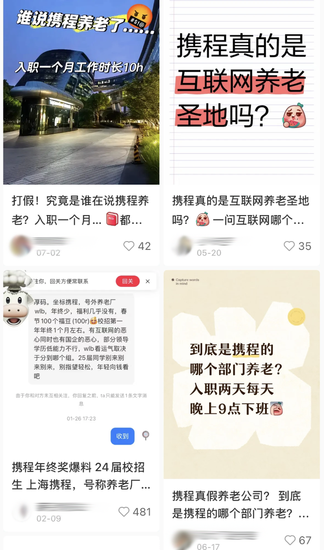 直到2024年正式毕业前,她前前后后拿到了百度、快手、顺丰、拼多多、携程和科大讯飞等多家公司的offer。“但还是选择了携程,面试官和我保证工作不卷,再加上养老的诱惑,你几乎没有理由拒绝携程。”在那一年,王新所在的大部门收到了上万份简历,只有她和剩下的小几百个幸运儿留在了这里养老。