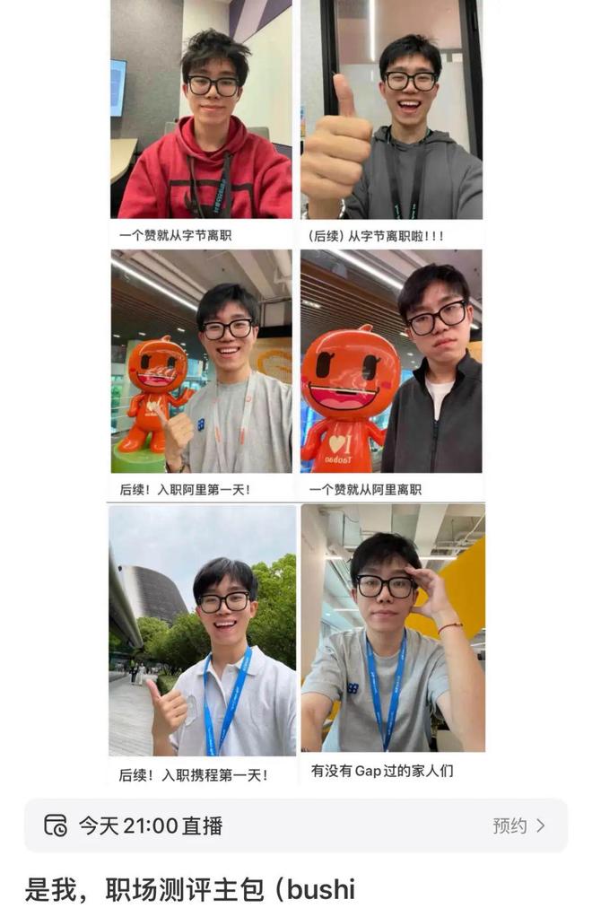 他还有一个外号叫做“大厂测评博主”,曾先后在字节干过2年、阿里1年。今年4月21日,他又入职了携程。
