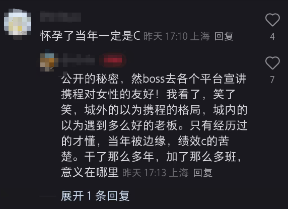 甚至有曾在携程工作的网友指出:“怀孕了当年绩效一定C”。