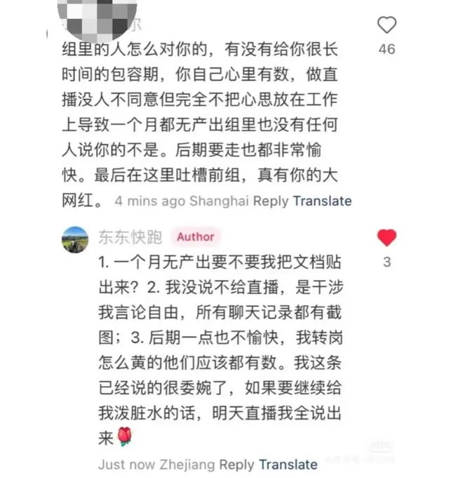 博主东东快跑在直播中提到,离职原因之一是“太耽误吃饭时间”。午休午饭要开会,晚饭时间也要开会,前脚筷子还在碗里扒拉菜,后脚就要拉着你进会议室。“晚上会上班到10点,转岗后开始在晚上7点和别人吃饭遛弯。”社交平台上出现了一位东东快跑的同事爆料,“他是因为摸鱼才离职的”,证据就是晚上7点看到了东东快跑在遛弯。