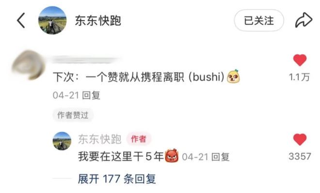 互联网小有名气的“离职博主”东东快跑最近又离职了。