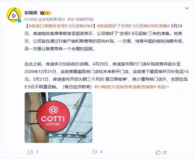 不过库迪仍在死磕低价,李颖波明确表示:"价格战(如9.9元)可能会持续三年。" 这种坚持背后是巨大的成本压力,库迪需要持续不断通过扩张维持现金流。