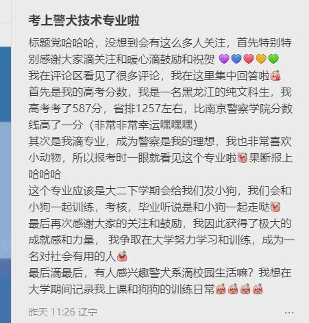 “真的会发狗吗?”黑龙江姑娘晒警犬技术专业录取结果,女生仅招2人,当事人:期待大学生活