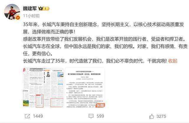 但是在被《人民日报》报道过后,魏建军只是表示“ 长城汽车走过了35