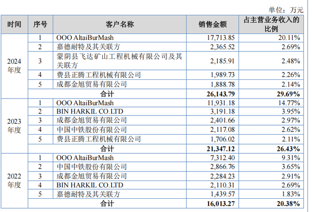 从外销国别来看,俄罗斯市场占据了至关重要的位置,不仅销售收入最高且增速最快,短短三年内出口额就从7,312万元增长至17,714万元。2022年度、2023年度和2024年度,这一地区的销售金额占外销收入的比例分别为72.70%、63.21%、77.91%。