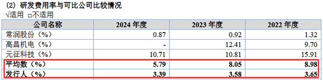 2022年至2024年,巴兰仕同行业可比公司的研发费用率均值分别为8.98%、8.05%、5.79%,均明显高于当年度巴兰仕研发费用率水平。