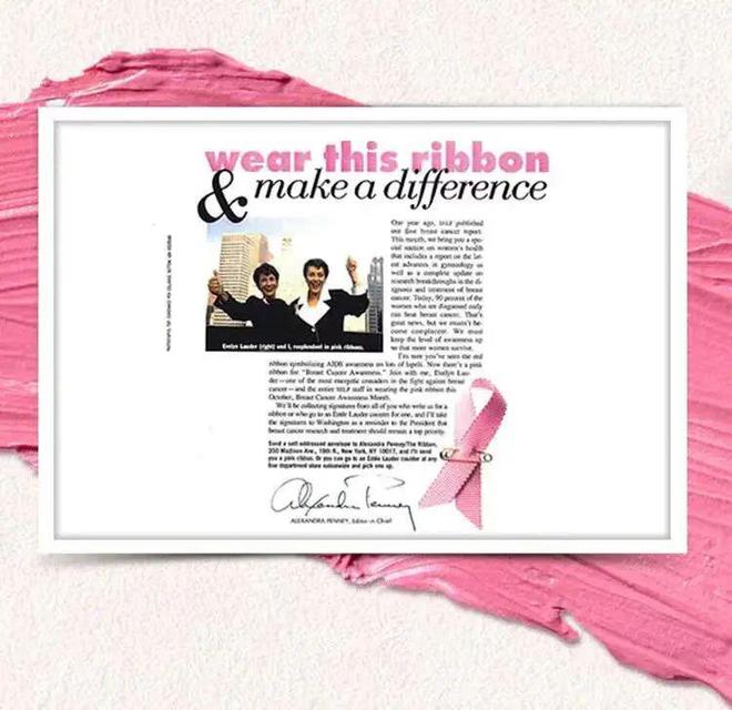 也就是在1992年,她和友人一起发起了这个雅诗兰黛集团至今为止仍是最大的企业社会责任项目——粉红丝带乳腺癌防治运动。直到今天,【粉红丝带】已经成为乳腺癌防治的标志,每年十月的第三个星期五也因此成为【粉红丝带关爱日】。