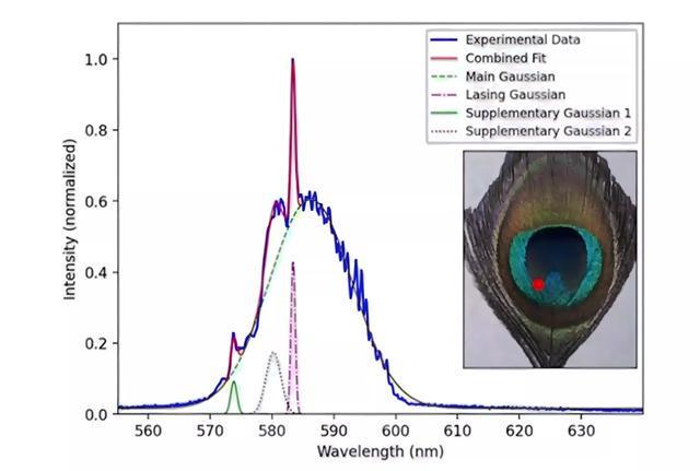 研究人员分析了发射光谱,发现观察到的激光行为与所谓的随机激光的预期不符。随机激光通常产生于不规则、高度散射的环境,产生的发射线难以预测且变化多端。相反,孔雀羽毛在特定波长下产生一致的模式,而不受局部颜色或结构的影响。这促使研究小组得出结论,激光反馈机制与导致羽毛呈现彩虹色的机制不同。