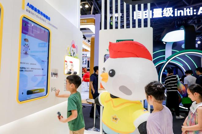 甚至在WAIC(世界人工智能大会)现场,还能看到众多耳熟能详的消费品牌展台。伊利、飞鹤作为其中的代表,前者在一楼通道入口摆上动态数据大屏,实时展示AI供应链系统;后者则把原创IP卡通形象"鹤小小"放到展台中央,让它与观众实时对话,让不少消费者首次发现AI早已融入自己的日常生活之中。
