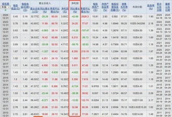 从时间线上来看,自2012年营收、净利润增速结束长年狂奔"转绿"之后,张裕公司的净利润走入了跌得多、涨得少的惯性,2013年、2020年、2024年几个特殊节点,跌幅更是达到了38.38%、58.75%、42.68%。威龙股份、莫高股份等业绩走势也基本遵循这一特征。