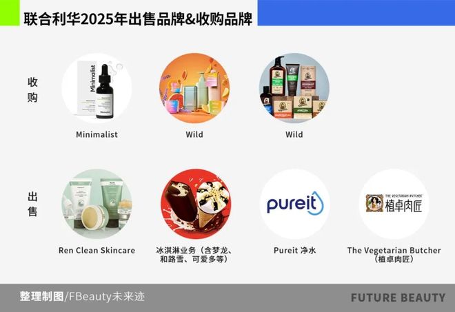 在资产剥离方面,3月联合利华宣布出售非核心品牌The Vegetarian Butcher,该品牌因增长潜力有限、与公司核心战略契合度不高而被剥离;5月宣布将在今年第三季度关停旗下护肤品牌REN,原因是内部因素叠加市场挑战,该品牌无法长期保持成功。