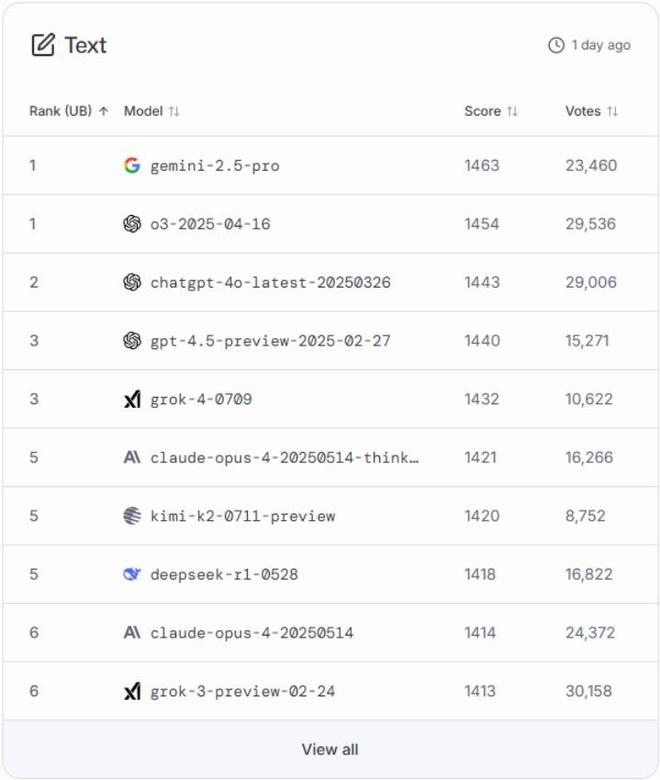 尽管有相关研究人员指出LMArena的排行榜存在私测特权、采样不公等问题,但它仍是目前衡量大语言模型综合实力较为权威的排行榜之一。
