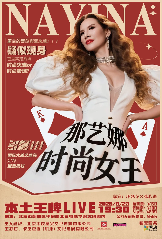 近日,那艺娜新一轮巡演《时尚女王2.0》北京站正式官宣,将于8月23日登陆本土王牌livehouse。票价从158元到VIP 299元不等,最贵“亲密无间祝福票”高达666元。