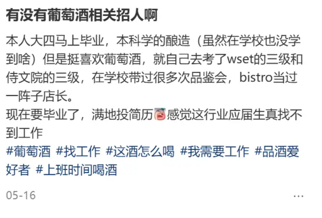 葡萄酒行业最大的人才缺口在销售。但你花四年学习的概率论、葡萄栽培、葡萄网格管理、微生物酿造,对你卖出一瓶酒并没有太大的帮助。