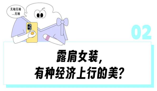 露的程度根据不同品类有所增加,短袖扔掉一个肩膀的布料变成斜肩。裙子更进一步,仿佛给肩膀用布料就会触犯神明,随便走进一个主流女装品牌,就能看到女裙全部变成无袖、两根肩带款。