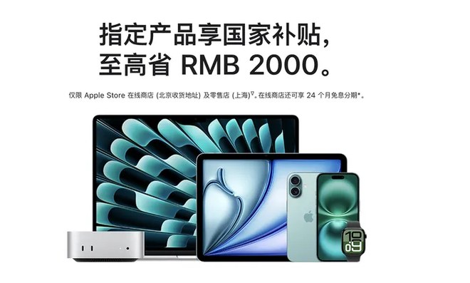 购买参与活动的Mac时,可享商品到手价基础上再立减20%的国家补贴,每件补贴不超过2000元。