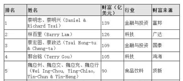 “富邦蔡家”的蔡明忠、蔡明兴兄弟,以139亿美元身价稳坐“首富”宝座;
