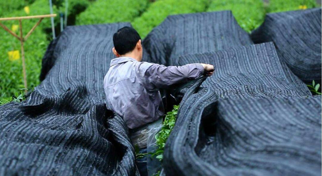 华绿园生物科技有限公司创始人蔡亚博士,是长期专注于茶、咖啡和中草药研究的资深学者,他解释道,所谓“覆盖栽培”,就是让茶树在遮阴条件下生长,“像是用黑色渔网做一个棚”。