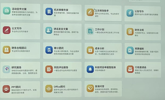 除了“政策通”,大模型中的实用模块还有财务法规、机关审稿、成本分析、预算编制、审计顾问、科研项目申报等,均来源于创业黑马多年来深耕企业服务所获得的大数据与可查询的各行业数据。