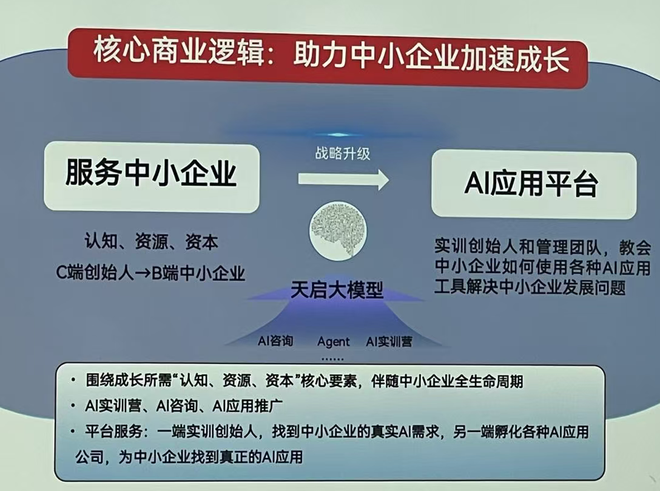 在创业黑马初涉中小企业创业服务的时候,业务还只能单纯围绕战略、营销、投融资、知识产权等方面展开。如今,来到AI时代,创业黑马董事会秘书徐文峰称,“无论对我们,还是对中小企业而言,AI时代的创业,不一样。”