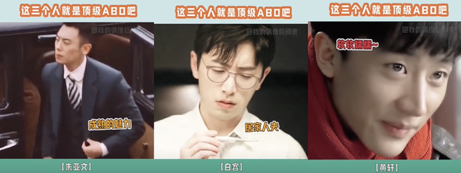 ABO世界观最早起源于欧美同人创作圈,给人类赋予三种阶层分明的“第二性别”——Alpha、Beta和Omega,与生理性别并存。针对这三种性别,有一个广为流传的简易版解释:Alpha通常是领导者和支配者,类似朱亚文,现在热搜上常挂着的“姐姐好A”“哥哥好A”就是这个A;Omega通常被视为社会中的弱势群体,较为柔弱可欺,可代入黄轩;Beta则是普罗大众,张力有限,这块目前白客是权威。