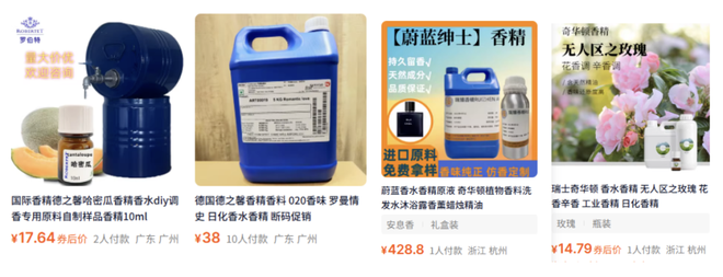 全球四大香精香料公司(奇华顿、德之馨、国际香精香料、芬美意)的香水香精静静陈列在商品列表里,好整以暇,待价而沽,便宜的200多块就能买到一公斤,贵的能到上千上万。