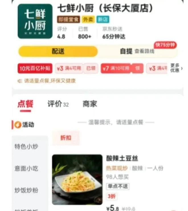 如今刘强东推出七鲜小厨,逻辑基本和京东物流类似,京东自建中央厨房,用机器控制火候,与中粮、正大等头部供应商建立战略合作,生鲜食材全程可追溯。