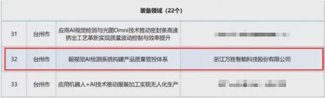 近日,浙江省经信厅正式印发《2025年浙江省人工智能赋能制造业典型案例的通知》,共遴选首批人工智能赋能制造业典型案例103个。其中,天台县的浙江万胜智能科技股份有限公司“超视觉 AI 检测系统构建产品质量管控体系”成功入选典型应用实践案例。