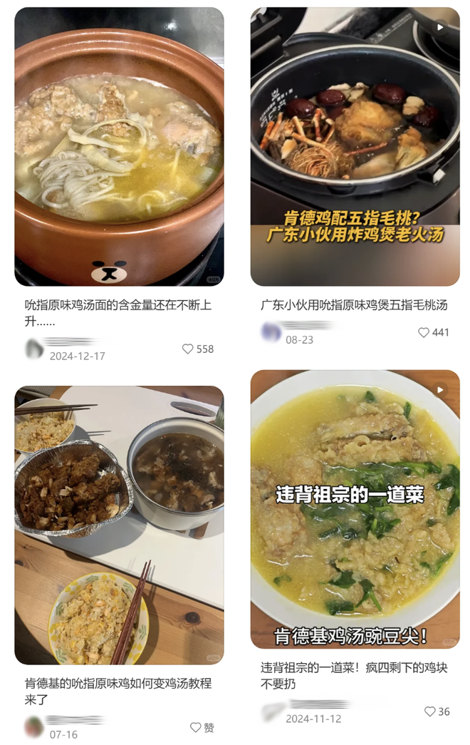 炸鸡焖饭太小众,所以肯德基的鸡又继续被打工人开发出了更多适合中国人胃口的做法。比如原味鸡可以加上豆腐和青菜一起煮鸡汤,调料都不用加,鸡肉自带丰富的味道层次;