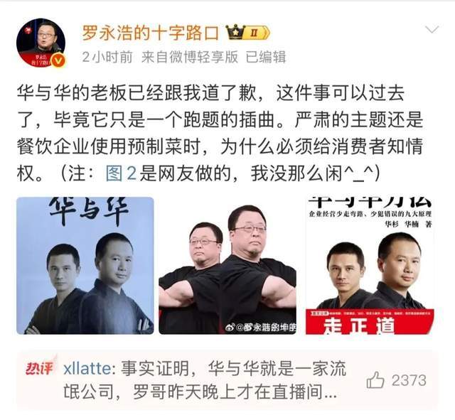 没想到,睡了一觉,罗永浩9月15日中午发微博称,华与华老板跟他道歉了,事情就算过去了。