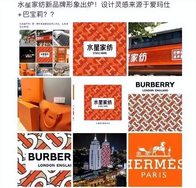 2020年,华与华作为水星家纺品牌设计方之一,其创始人华杉发布的“水星家纺超级花边”品牌系统,被指从颜色到花纹都与国际时尚品牌巴宝莉、爱马仕的设计元素高度雷同。