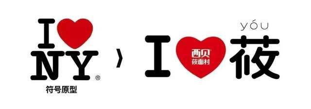 “莜”字不是不好认嘛,“I LOVE YOU”没人不会读吧,于是,华与华帮助西贝打造了醒目的标识“I♥莜”,为西贝制定广告语:“闭着眼睛点,道道都好吃!”