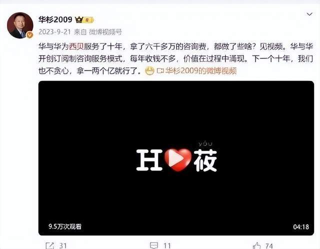 2023年,华杉曾在社交媒体公开发文:“华与华为西贝服务了十年,拿了六千多万的咨询费。华与华开创订阅制咨询服务模式,每年收钱不多,价值在过程中涌现。下一个十年,我们也不贪心,拿一两个亿就行了。”