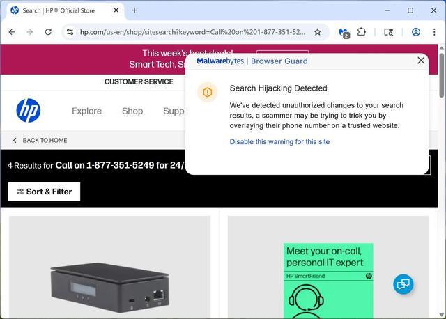 Malwarebytes 最近发布警告称,即使访问一些主流品牌的官方网站搜索技术支持电话号码的用户也可能会遇到虚假的联系信息。用户应仔细检查支持网站搜索栏中出现的文字,并谨慎对待 Google 赞助搜索结果(如有)。