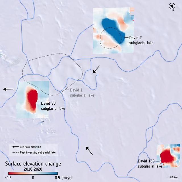通过对十年间南极冰盖表面高度局部变化的分析,研究人员得以定位亚冰盖湖泊,并实时监测其注满和排空的过程。