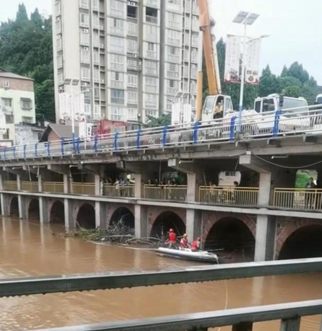 内江河道清理翻船事故,一人被冲走,搜救进行中