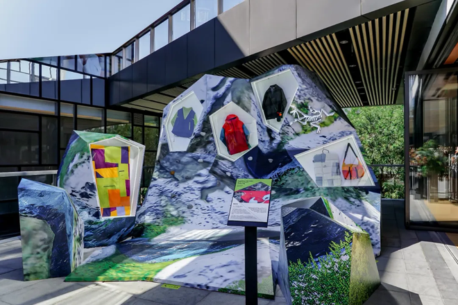 2023年,始祖鸟把北京三里屯店拆卸后的围挡做成了一个艺术装置,用于宣传他们的新款联名冲锋衣。始祖鸟表示,这场环保策展是为了表达“可持续性不仅仅是一种设计理念,更是一种对自然资源的负责态度”。其中一篇推广文章的标题是,“这个户外品牌,把可持续玩成艺术”。