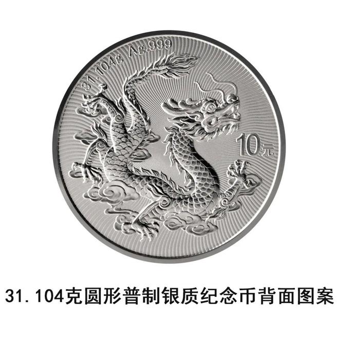 31.104克圆形银质纪念币为普制币,含纯银31.104克,直径38毫米,面额10元,成色99.9%,最大发行量10000枚。