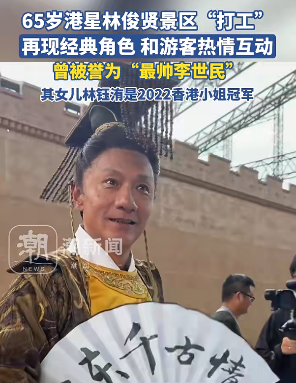 港星林俊贤景区打工再现经典角色,游客热情互动,昔日最帅李世民风采依旧