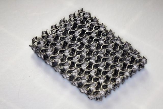 在最新研究中,团队已用该技术制造出包括铁、银、铜等金属的复杂数学晶格(如“陀螺体”)结构,并通过机械测试仪器证明其承压能力比常规方法高20倍,同时成品收缩率仅为20%(远低于传统工艺的60-90%)。除强度与轻质兼备外,此方法特别适用于传感器、生物医学设备以及能源转换器等对结构复杂与高强度有特殊要求的领域。未来应用前景还包括催化反应所需的高表面积金属以及高效能冷却结构等。
