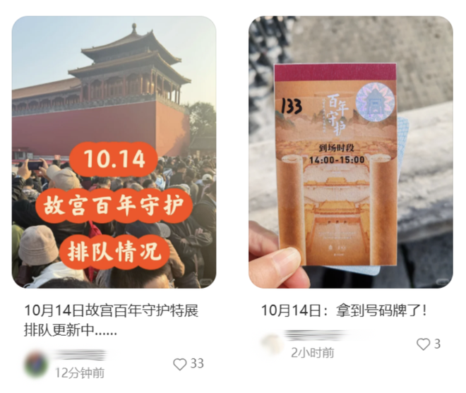 “拥堵”或许只是阵痛。10月14日,故宫百年特展宣布开始采用发号牌的方式限流,号牌上写明了每个人的到场时间段。当天7点左右到故宫的人领取到了79号号牌码,显示的到场时间段是11点至12点,在规定时间段内到场的游客可以自由参观,“第一期展期结束了,故宫终于想起来发号了”。