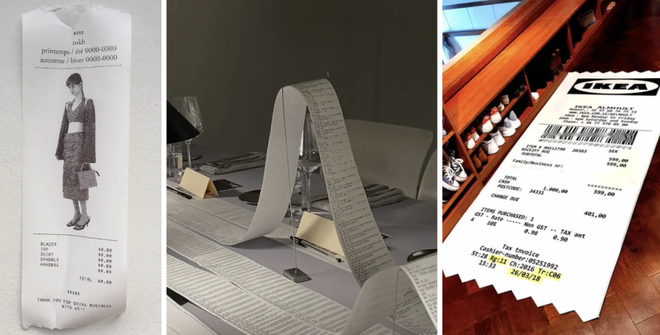 时尚品牌将小票做成Lookbook,家居品牌宜家把小票做成地毯,餐厅将小票摆上餐桌,“感觉会成为吃过最有压力的一顿饭”。