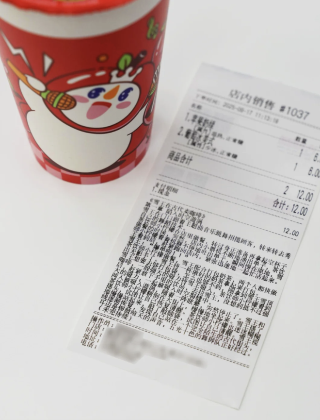 写小说,并不是小票整的第一出“花活”。对于卷生卷死的商家而言,小票不仅是一张简单的交易凭证,更像是一张几乎免费的宣传单。