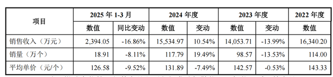 价格方面,2023年度销售单价与2022年相比基本保持稳定,2024年度销售单价较上年下降7.49%,主要系加热器暖风产品销售占比上升所致。2025年1-3月销售单价较上年同期下降9.52%。