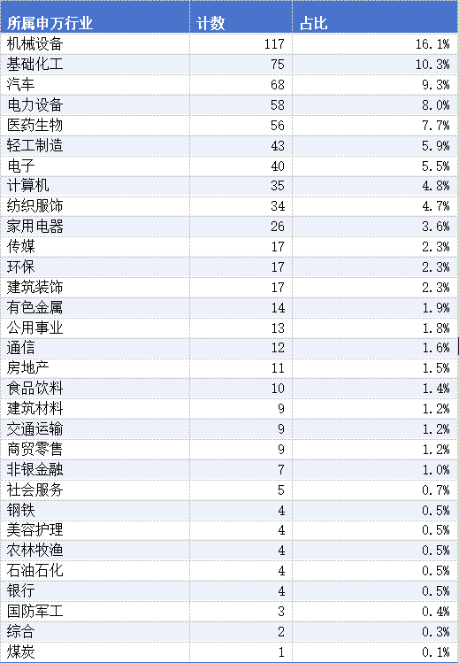机械设备行业公司最多